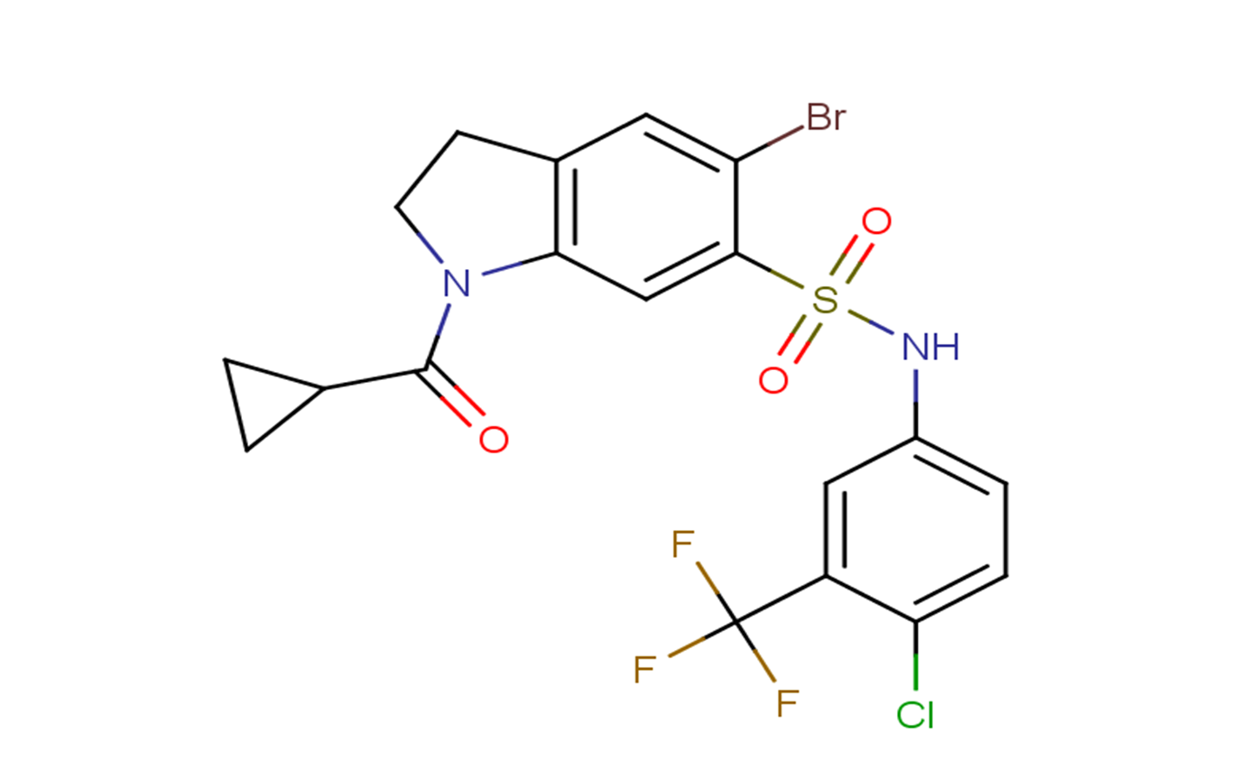 SMILESO=S(C1=CC2=C(C=C1Br)CCN2C(C3CC3)=O)(NC4=CC=C(Cl)C(C(F)(F)F)=C4)=O