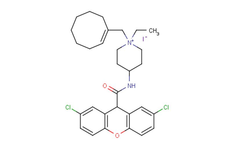 SMILES[I-].CC[N+]1(C\C2=C\CCCCCC2)CCC(CC1)NC(=O)C1c2cc(Cl)ccc2Oc2ccc(Cl)cc12