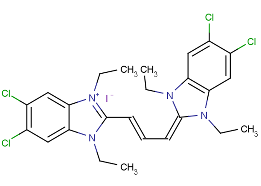 JC-1 是一种荧光亲脂性羰花青染料。它已用于测量线粒体膜电位。 JC 1 可用于通过流式细胞术测量线粒体膜电位的探针。第488章nm 激光波长常见于流式细胞仪。 JC-1(2.5 μM)暴露于小鼠 L1210 淋巴母细胞,可以检测到这些细胞中细胞质 JC-1 单体和线粒体 J-聚集体的存在。