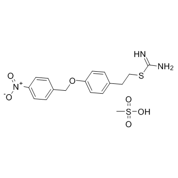 SMILESCS(O)(=O)=O.NC(=N)SCCc1ccc(OCc2ccc(cc2)[N+]([O-])=O)cc1