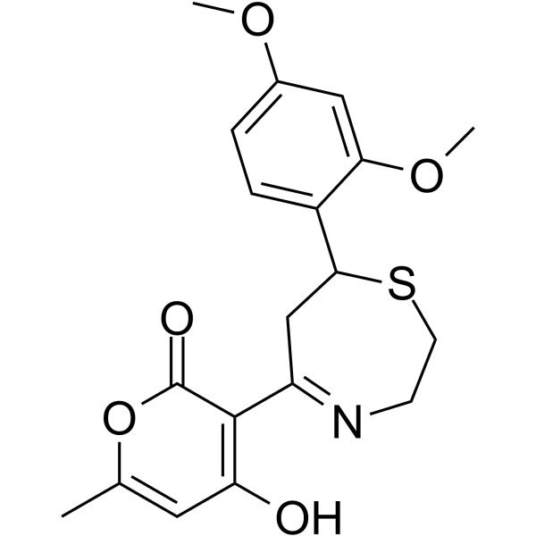 SMILESCOc1ccc(C2CC(=NCCS2)c2c(O)cc(C)oc2=O)c(OC)c1