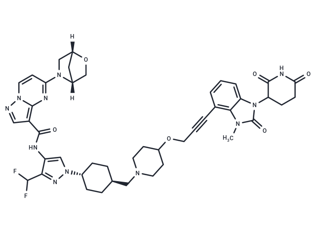 SMILESO=C1N(C=2C(=C(C#CCOC3CCN(C[C@H]4CC[C@@H](CC4)N5C=C(NC(=O)C6=C7N(N=C6)C=CC(=N7)N8[C@@]9(C[C@](C8)(OC9)[H])[H])C(C(F)F)=N5)CC3)C=CC2)N1C)C%10C(=O)NC(=O)CC%10