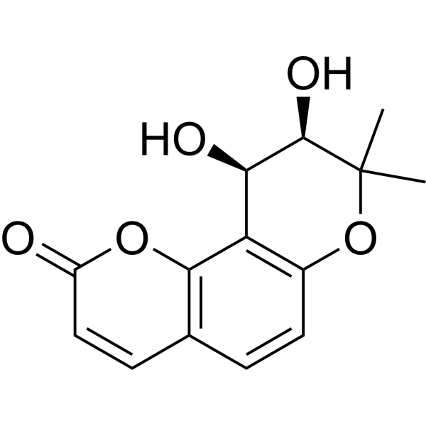 产品简述Khellactone shows antitumor activity,it can suppress the growth of NCI-H460 tumor cells. (+)-4'-cis-Khellactone and (+)-3'-cis-khellactone have antiplasmodial activities, they show notable inhibitory activity against -sensitive strains of with IC(50) values from 1.5 and 2.4 microM.