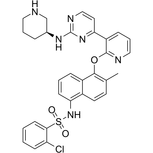 SMILESCc1ccc2c(NS(=O)(=O)c3ccccc3Cl)cccc2c1Oc1ncccc1-c1ccnc(N[C@H]2CCCNC2)n1