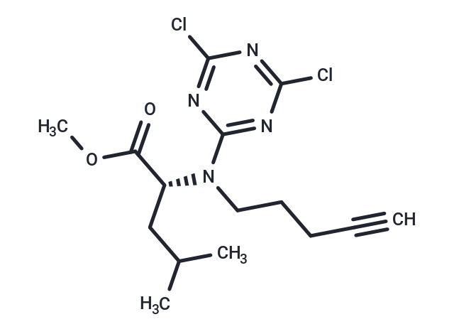 SMILESN([C@@H](C(OC)=O)CC(C)C)(CCCC#C)C=1N=C(Cl)N=C(Cl)N1