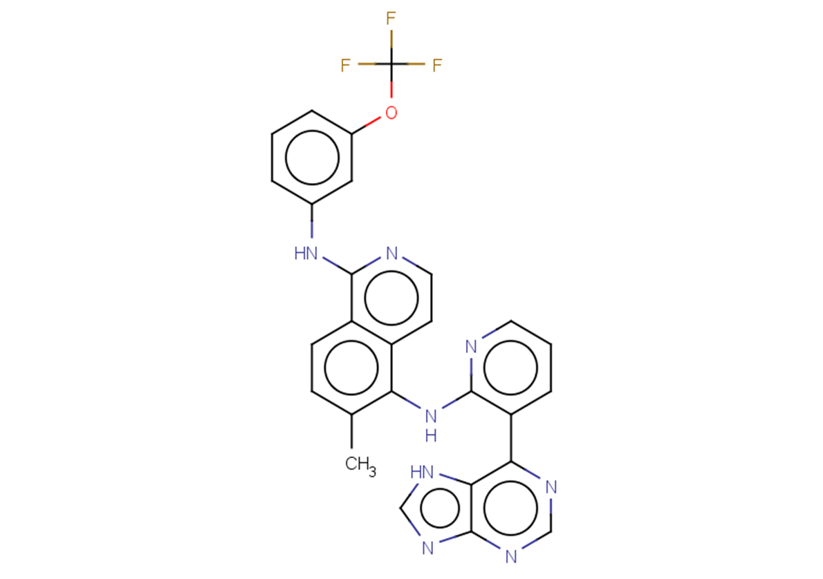 SMILESCc1ccc2c(Nc3cccc(OC(F)(F)F)c3)nccc2c1Nc1ncccc1-c1ncnc2c1[nH]cn2