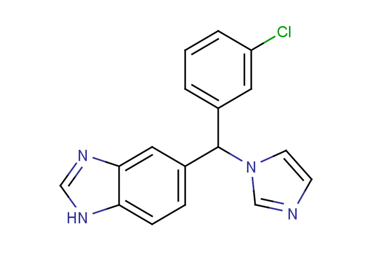 体内实验Liarozole (5-20 mg/kg; p.o.; 3 days) reverses the vaginal keratosis caused by estrogen stimulation.Liarozole (40 mg/kg; p.o.; 21 days) reduces tumor burden substantially. Animal Model:Ovariectomized rats Dosage:5~20 mg/kg Administration:P.o.; 3 days Result:Reversed the vaginal keratosis caused by estrogen stimulation.Animal Model:SCID miceDosage:40 mg/kg Administration:P.o.; 21 days Result:Inhibited tumor growth and survival.
