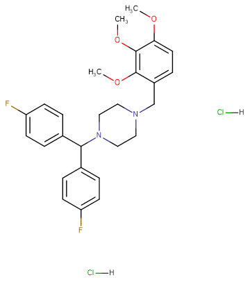 SMILESCOC1=CC=C(CN2CCN(C(C3=CC=C(F)C=C3)C4=CC=C(F)C=C4)CC2)C(OC)=C1OC.[H]Cl.[H]Cl