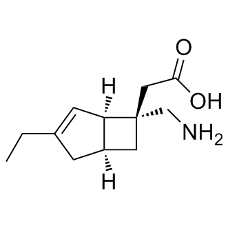 Mirogabalin (DS-5565) 是电压门控钙通道 α2δ 亚基的新型有效选择性配体,对人 α2δ-1、人 α2δ-2、大鼠 α2δ-1 和大鼠 α2δ-1 的 Kd 为 13.5/22.7/27.0/47.6 nM分别为大鼠α2δ-2亚基。