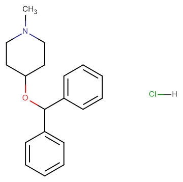 SMILESCN1CCC(OC(C2=CC=CC=C2)C3=CC=CC=C3)CC1.[H]Cl