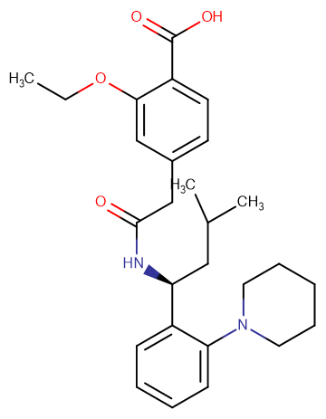化学全称2-ethoxy-4-[2-[[(1S)-3-methyl-1-(2-piperidin-1-ylphenyl)butyl]amino]-2-oxoethyl]benzoic acid