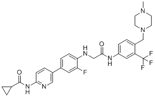 化学全称N-(5-(3-Fluoro-4-((2-((4-((4-methylpiperazin-1-yl)methyl)-3-(trifluoromethyl)phenyl)-amino)-2-oxoethyl)amino)phenyl)pyridin-2-yl)cyclopropanecarboxamide