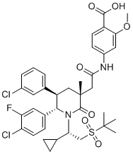 化学全称4-(2-((3R,5R,6S)-1-((S)-2-(tert-Butylsulfonyl)-1-cyclopropylethyl)-6-(4-chloro-3-fluorophenyl)-5-(3-chlorophenyl)-3- methyl-2-oxopiperidin-3-yl)acetamido)-2-methoxybenzoic Acid