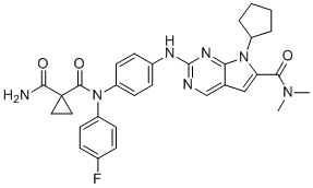 化学全称N-(4-((7-cyclopentyl-6-(dimethylcarbamoyl)-7H-pyrrolo[2,3-d]pyrimidin-2-yl)amino)phenyl)-N-(4-fluorophenyl)cyclopropane-1,1-dicarboxamide