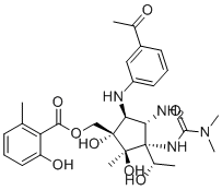 化学全称[(1S,2R,3R,4S,5S)-5-(3-acetylanilino)-4-amino-3-(dimethylcarbamoylamino)-1,2-dihydroxy-3-[(1S)-1-hydroxyethyl]-2-methylcyclopentyl]methyl 2-hydroxy-6-methylbenzoate