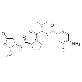 SMILESO=C([C@H]1N(C([C@@H](NC(C2=CC=C(N)C(Cl)=C2)=O)C(C)(C)C)=O)CCC1)N[C@@H](C3)[C@H](OCC)OC3=O