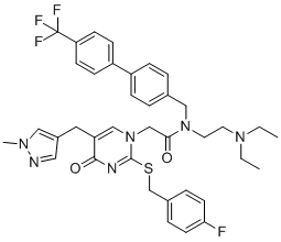 化学全称1(4H)-Pyrimidineacetamide, N-[2-(diethylamino)ethyl]-2-[[(4-fluorophenyl)methyl]thio]-5-[(1-methyl-1H-pyrazol-4-yl)methyl]-4-oxo-N-[[4'-(trifluoromethyl)[1,1'-biphenyl]-4-yl]methyl]-