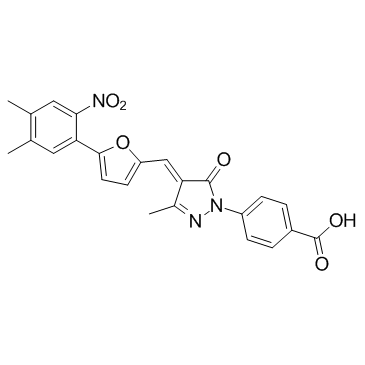 SMILESO=C(O)C1=CC=C(N2N=C(C)/C(C2=O)=C\C3=CC=C(C4=CC(C)=C(C)C=C4[N+]([O-])=O)O3)C=C1