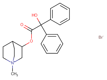 SMILESC[N+]12CCC(CC1)C(C2)OC(=O)C(C3=CC=CC=C3)(C4=CC=CC=C4)O.[Br-]