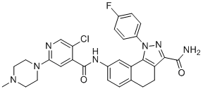 化学全称8-[[[5-Chloro-2-(4-methyl-1-piperazinyl)-4-pyridinyl]carbonyl]amino]-1-(4-fluorophenyl)-4,5-dihydro-1H-benz[g]indazole-3-carboxamide