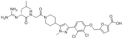化学全称5-[[2,3-dichloro-4-[5-[1-[2-[[(2R)-2-(diaminomethylideneamino)-4-methylpentanoyl]amino]acetyl]piperidin-4-yl]-1-methylpyrazol-3-yl]phenoxy]methyl]furan-2-carboxylic acid