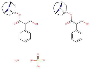 SMILESCN1[C@@H]2CC[C@H]1CC(C2)OC(=O)C(CO)C3=CC=CC=C3.CN1[C@@H]2CC[C@H]1CC(C2)OC(=O)C(CO)C3=CC=CC=C3.O.OS(=O)(=O)O