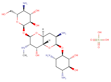 SMILESO[C@H]1[C@@H](O[C@@H]2[C@@H](NC)[C@@H](O)[C@]3([H])[C@@](C[C@@H](N)[C@@H](O[C@H]4[C@H](O)[C@@H](O)[C@H](N)C[C@@H]4N)O3)([H])O2)O[C@H](CO)[C@@H](N)[C@@H]1O.O=S(O)(O)=O