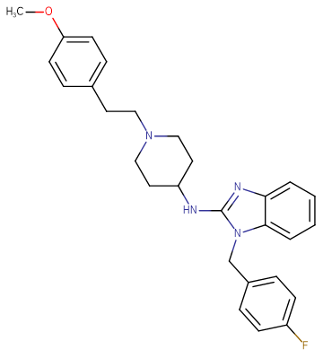 SMILESCOC1=CC=C(C=C1)CCN2CCC(CC2)NC3=NC4=CC=CC=C4N3CC5=CC=C(C=C5)F