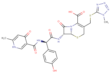 SMILESCC1=CC(=O)C(=CN1)C(=O)N[C@H](C2=CC=C(C=C2)O)C(=O)N[C@H]3[C@@H]4N(C3=O)C(=C(CS4)CSC5=NN=NN5C)C(=O)O