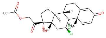 SMILESC[C@@]12[C@](C(COC(C)=O)=O)(O)CC[C@@]1([H])[C@]3([H])CCC4=CC(C=C[C@]4(C)[C@@]3(Cl)[C@@H](Cl)C2)=O