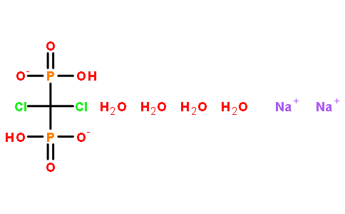 SMILESC(P(=O)(O)[O-])(P(=O)(O)[O-])(Cl)Cl.O.O.O.O.[Na+].[Na+]