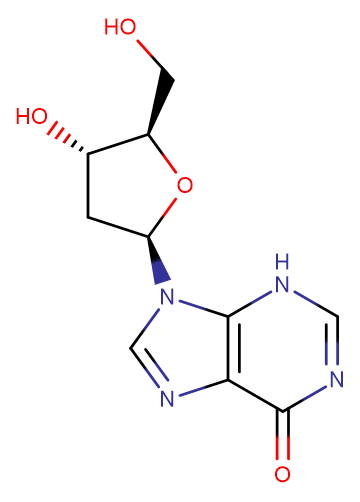 SMILESC1[C@@H]([C@H](O[C@H]1N2C=NC3=C2NC=NC3=O)CO)O