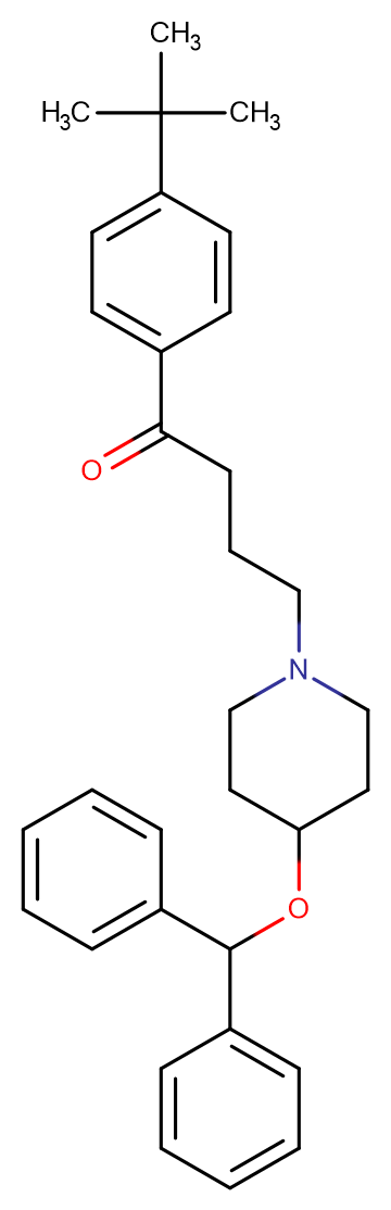 SMILESO=C(CCCN1CCC(OC(C2=CC=CC=C2)C3=CC=CC=C3)CC1)C4=CC=C(C(C)(C)C)C=C4