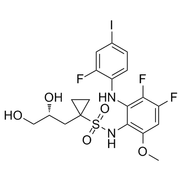 化学全称Cyclopropanesulfonamide, N-[3,4-difluoro-2-[(2-fluoro-4-iodophenyl)amino]-6-methoxyphenyl]-1-[(2R)-2,3-dihydroxypropyl]-
