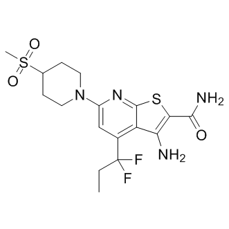 化学全称Thieno[2,3-b]pyridine-2-carboxamide, 3-amino-4-(1,1-difluoropropyl)-6-[4-(methylsulfonyl)-1-piperidinyl]-