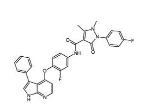 化学全称N-(3-fluoro-4-((3-phenyl-1H-pyrrolo[2,3-b]pyridin-4-yl)oxy)phenyl)-2-(4-fluorophenyl)-1,5-dimethyl-3-oxo-2,3-dihydro-1H-pyrazole-4-carboxamide.