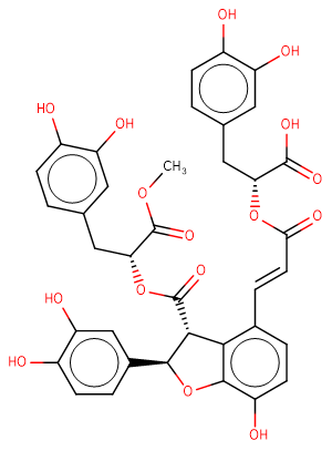 SMILESCOC(=O)[C@@H](Cc1ccc(O)c(O)c1)OC(=O)[C@H]1[C@@H](Oc2c1c(\C=C\C(=O)O[C@H](Cc1ccc(O)c(O)c1)C(O)=O)ccc2O)c1ccc(O)c(O)c1