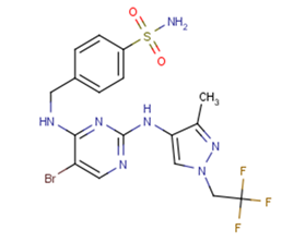 SMILESCc1nn(CC(F)(F)F)cc1Nc1ncc(Br)c(NCc2ccc(cc2)S(N)(=O)=O)n1