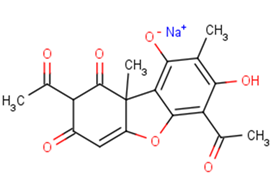 SMILES[Na+].CC(=O)C1C(=O)C=C2Oc3c(c([O-])c(C)c(O)c3C(C)=O)C2(C)C1=O