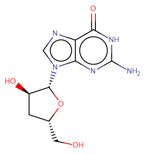 SMILESNc1nc2c(ncn2[C@@H]2O[C@H](CO)C[C@H]2O)c(=O)[nH]1
