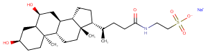 SMILESC[C@H](CCC(=O)NCCS(=O)(=O)[O-])[C@H]1CC[C@@H]2[C@]1(CC[C@H]3[C@H]2C[C@@H]([C@H]4[C@@]3(CC[C@H](C4)O)C)O)C.[Na+]
