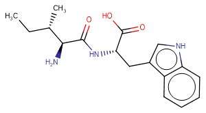 SMILESCC[C@H](C)[C@H](N)C(=O)N[C@@H](Cc1c[nH]c2ccccc12)C(O)=O