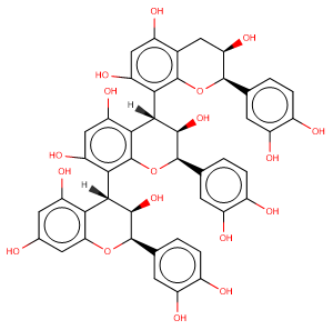 SMILES[H][C@]1([C@@H](O)[C@H](Oc2cc(O)cc(O)c12)c1ccc(O)c(O)c1)c1c(O)cc(O)c2c1O[C@@H]([C@H](O)[C@@]2([H])c1c(O)cc(O)c2C[C@@H](O)[C@H](Oc12)c1ccc(O)c(O)c1)c1ccc(O)c(O)c1