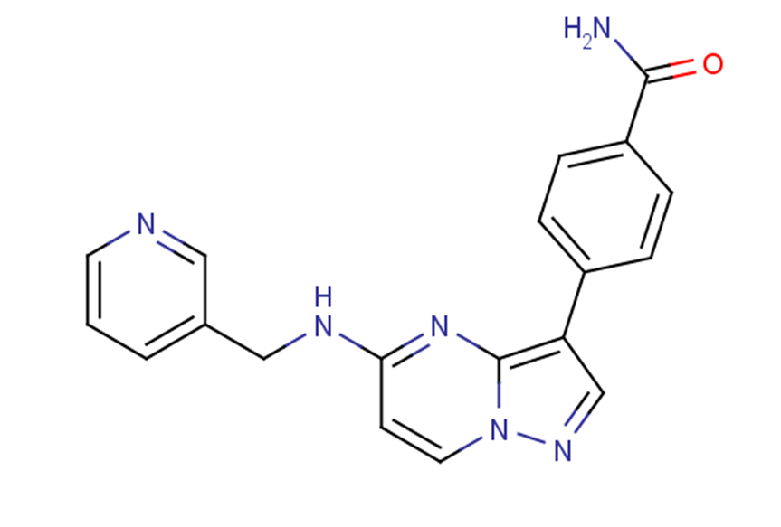 SMILESNC(=O)C1=CC=C(C=C1)C1=C2N=C(NCC3=CC=CN=C3)C=CN2N=C1