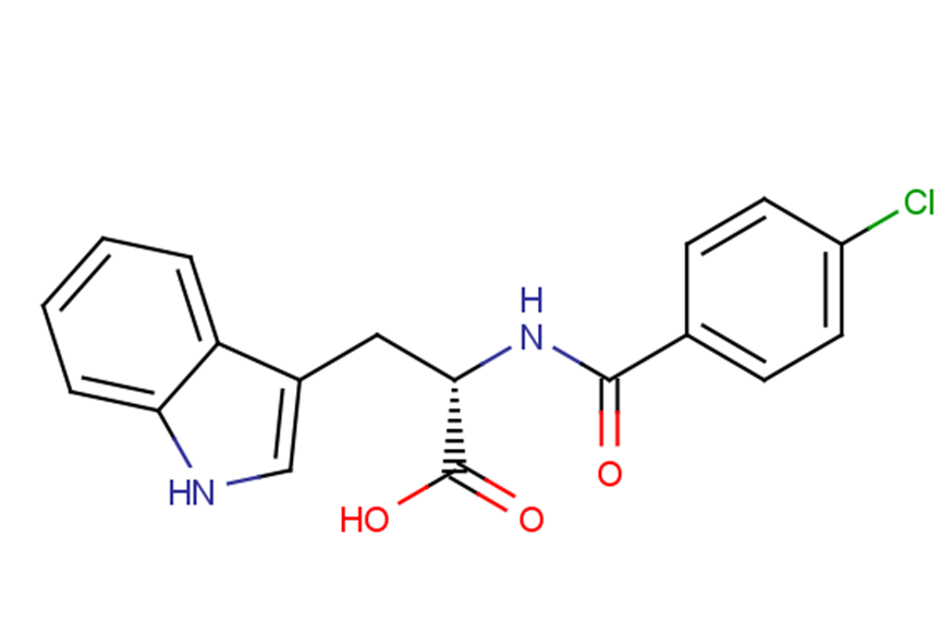 SMILESO=C(O)[C@H](CC1=CNC2=C1C=CC=C2)NC(C3=CC=C(Cl)C=C3)=O