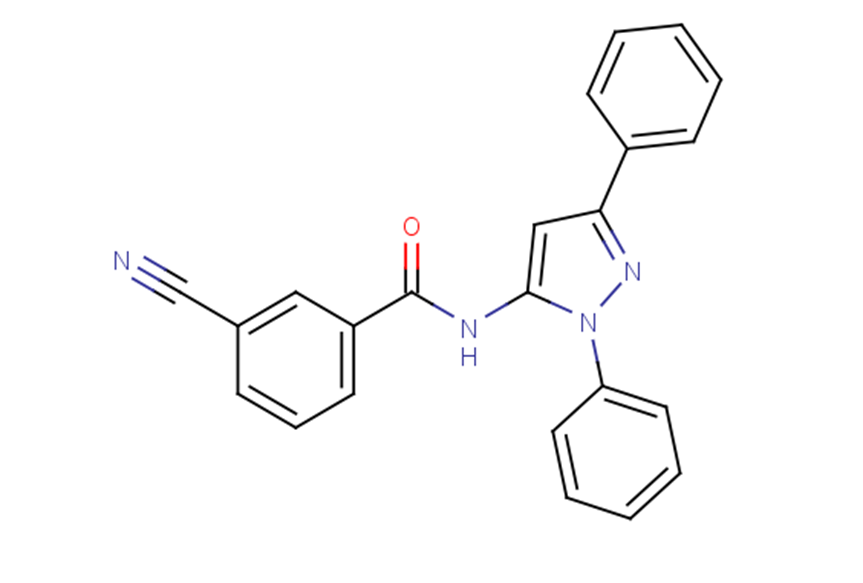 SMILESO=C(Nc1cc(nn1-c1ccccc1)-c1ccccc1)c1cccc(c1)C#N