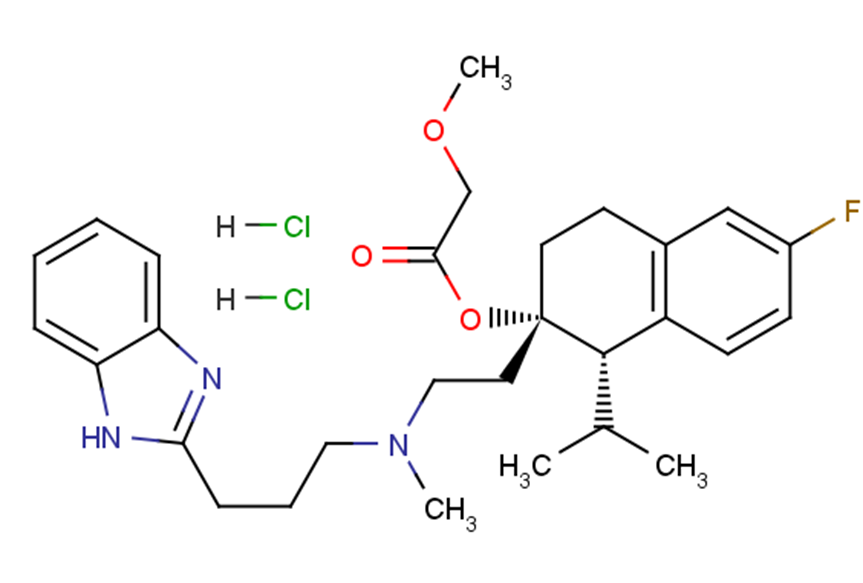 SMILESCl.Cl.COCC(=O)O[C@]1(CCN(C)CCCc2nc3ccccc3[nH]2)CCc2cc(F)ccc2[C@@H]1C(C)C