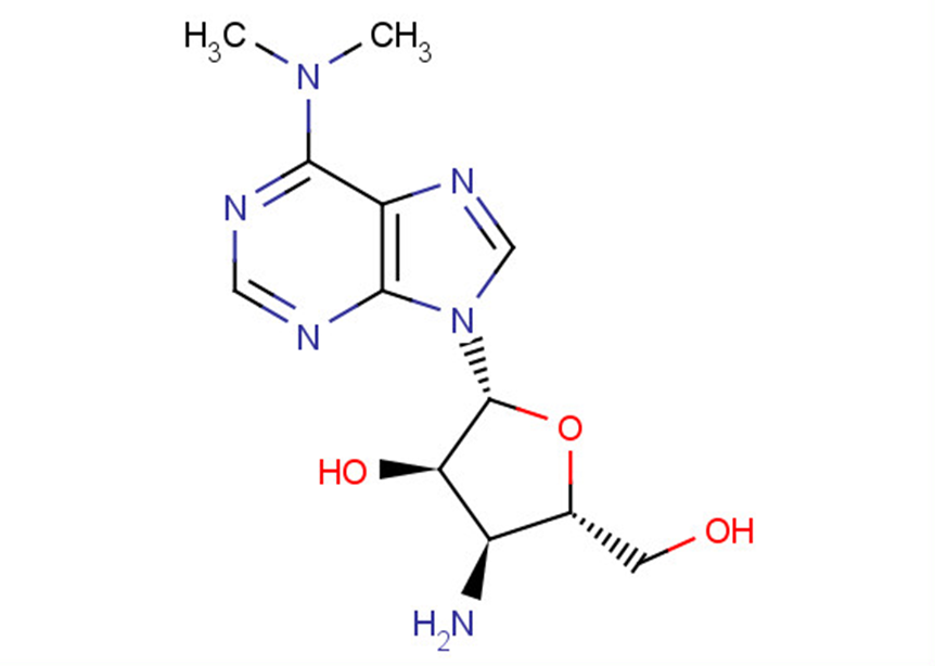 产品描述Puromycin aminonucleoside increases podocyte permeability by modulating ZO-1 in an oxidative stress-dependent manner.Puromycin aminonucleoside -induced podocyte apoptosis is p53 dependent. Puromycin aminonucleoside causes podocyte apoptosis in a time-dependent manner. The IC50 values for PMAT-expressing and vector-transfected cells are 48.9 and 122.1 μM, respectively, suggesting expression of PMAT-enhanced cell sensitivity to Puromycin aminonucleoside. Puromycin aminonucleoside uptake in PMAT-expressing cells is fourfold higher at pH 6.6 than that at pH 7.4. Puromycin aminonucleoside (30 μg/mL) markedly enhances p53 protein levels in podocytes. Puromycin aminonucleoside (250 μM) is toxic to both PMAT-expressing and vector-transfected cells .Rats given Puromycin aminonucleoside (100 mg/kg, s.c.) gain less weight and their serum creatinine levels are higher than the control rats. The number of podocytes per glomerulus is 95.5±17.6 in the control rats, 90.7 on Day 4 in Puromycin aminonucleoside (8 mg/100 g, i.v.)-treated nephrosis rats. The amount of nephrin per glomerulus in control rats is 1.02±0.11 fmol and those in Puromycin aminonucleoside nephrosis rats are reduced to 0.46±0.06 fmol and 0.35±0.04 fmol on Day 4 and Day 7. The nephrin amount per podocyte is significantly decreased association with the development of proteinuria in Puromycin aminonucleoside nephrosis rats.