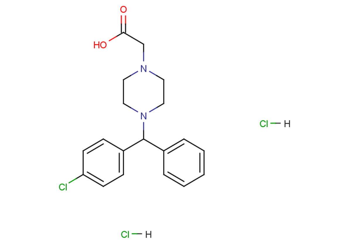 SMILESO=C(O)CN1CCN(C(C2=CC=C(Cl)C=C2)C3=CC=CC=C3)CC1.[H]Cl.[H]Cl