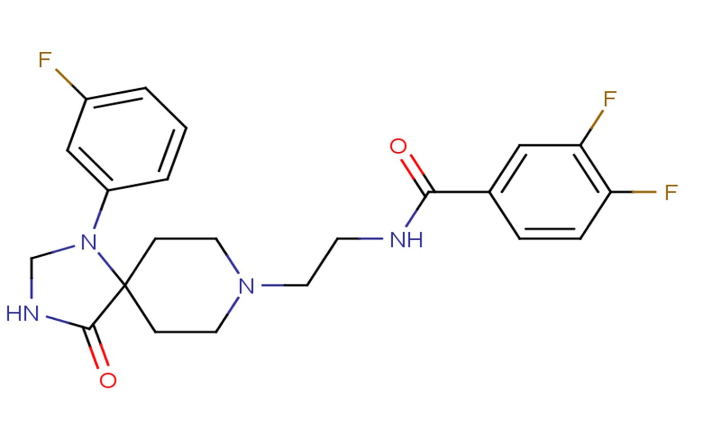 SMILESC1CN(CCC12C(=O)NCN2C3=CC(=CC=C3)F)CCNC(=O)C4=CC(=C(C=C4)F)F